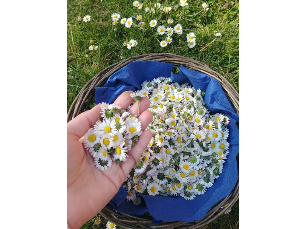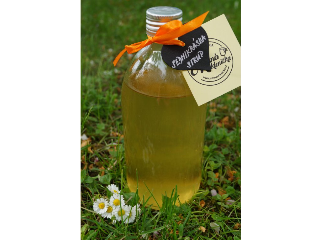 Sirup z výluhu sedmikráskových květů z naší zahrádky.